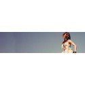 Robe en mousseline sans manches, longueur genoux. Décolleté en V avec élastique sous la poitrine.
